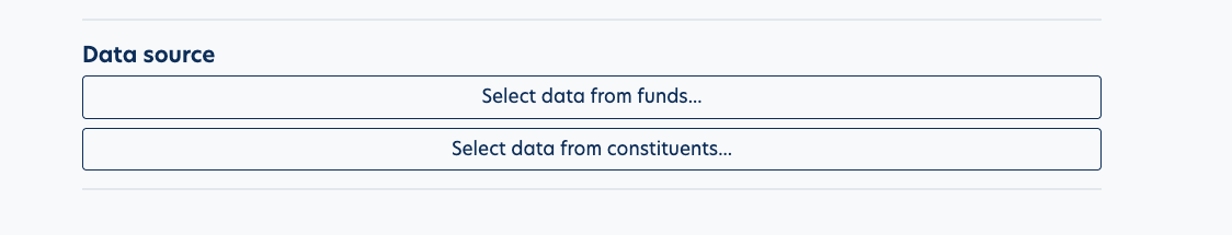 5. Select the Data source. Data Source is where you will choose Funds and Constituents to build the report package. Choosing either "Select data from funds" or "Select data from constituents" will get you to the same place eventually, because all reports are created for constituents. In other words, if you choose funds as your data source, you will later be asked which constituents you want to include. Likewise, if you choose constituents as your data source, you will choose constituents, then you will be asked which funds you want to include on their reports.